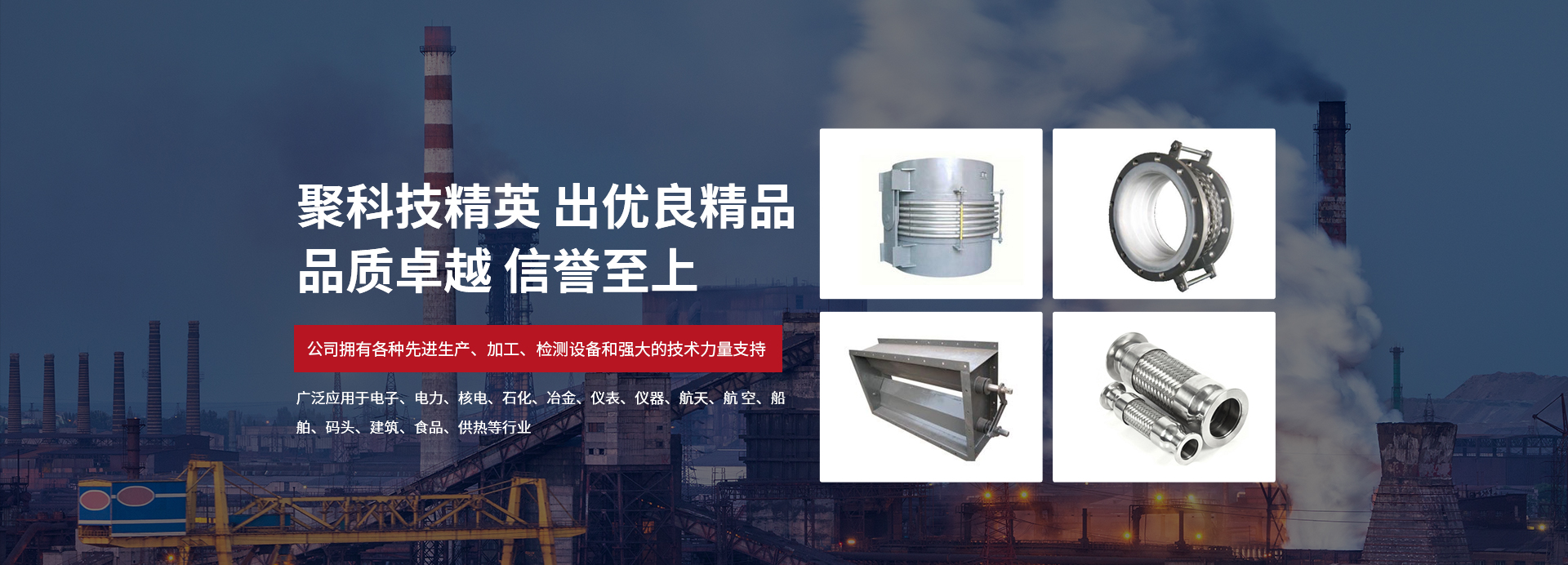 產(chǎn)品廣泛應(yīng)用于電子、電力、核電、石化、冶金、儀表、儀器、航天、航 空、船舶、碼頭、建筑、食品、供執(zhí)管等行業(yè),先后為數(shù)百家大型企業(yè)提供各種型號的優(yōu)質(zhì)補償器。